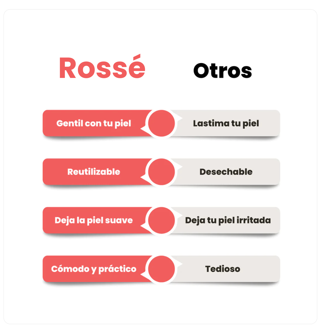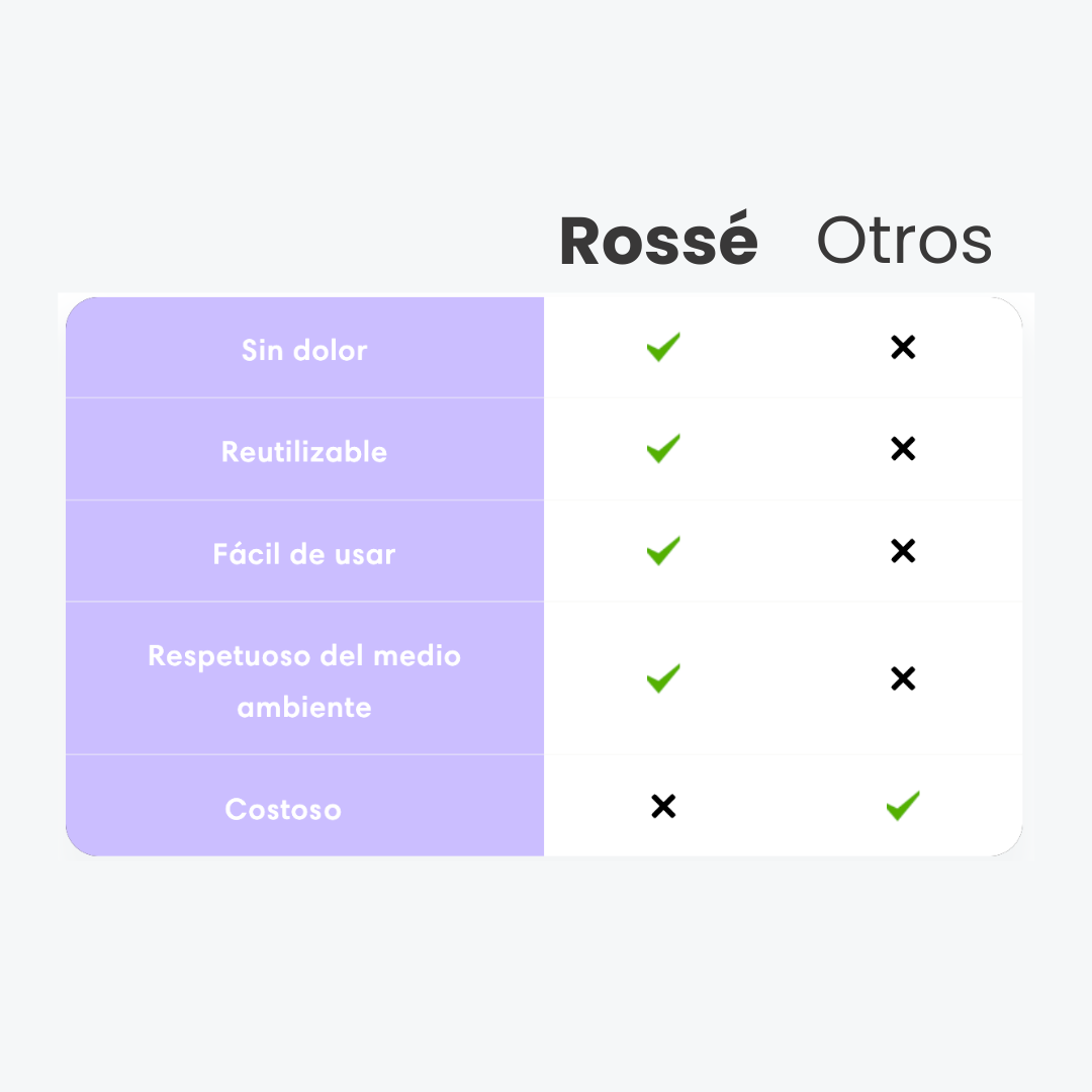 A diferencia de otros productos, Rossé utiliza la última tecnología en depilación, suave y agradable para tu piel.